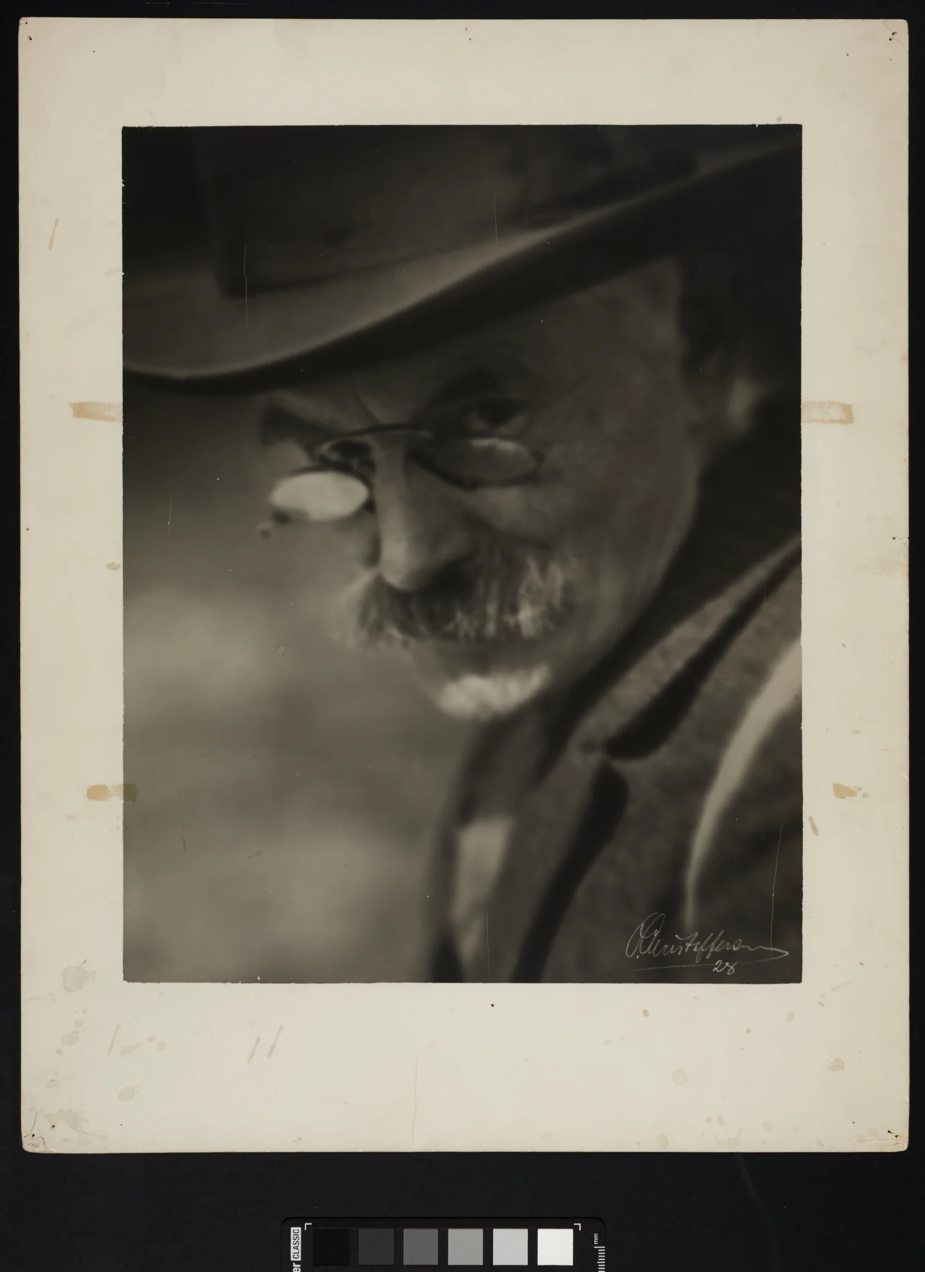 Portrait of Martinsen (1928) by Olaf Christoffersen is a historic photograph from Asker. The image shows Christoffersen’s father-in-law, who came from a farm in the Billingstad forest area. Martinsen ran the coaching station at Nesbru—the first house in the area—located along the King’s Road (Kongeveien), the 17th-century main thoroughfare connecting Christiania (today’s Oslo) with Bragernes (now Drammen). As a blacksmith, shoemaker, and host for travelers, he played an important role in the local community. The portrait was exhibited at The London Salon of Photography in 1930 and at Oslo Kamera Klubb’s 25th-anniversary exhibition in 1946.