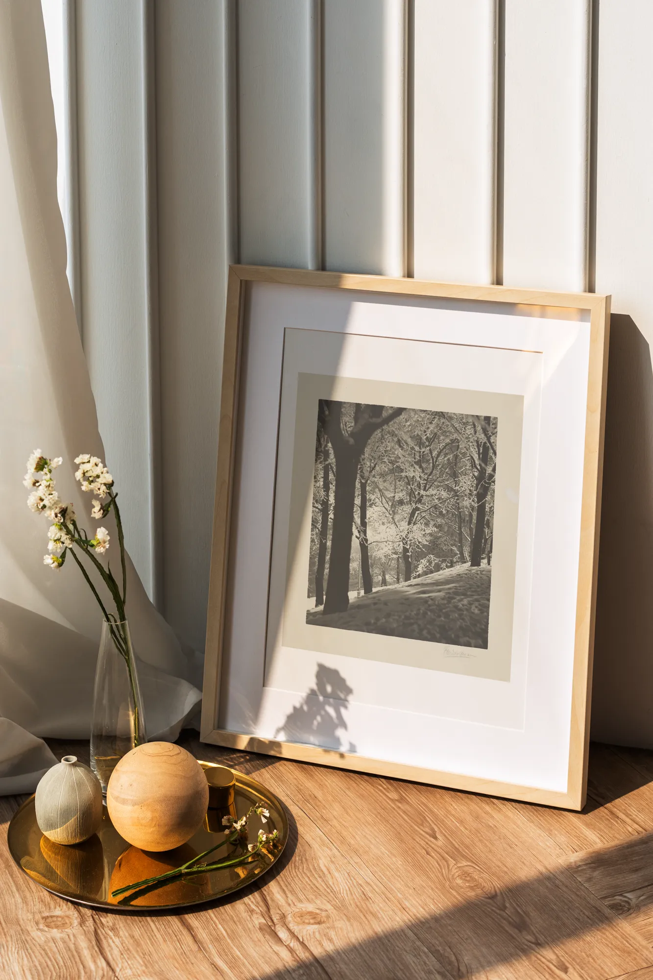 Technical Details: Christoffersen likely used a long exposure to capture the lantern’s light and reveal the intricate details of the frost. He balances high contrast with soft light transitions, making the tree trunks appear almost black while the frost-covered branches catch and reflect the light. The careful composition and pictorialist use of light give the image a distinctive depth and visual rhythm.