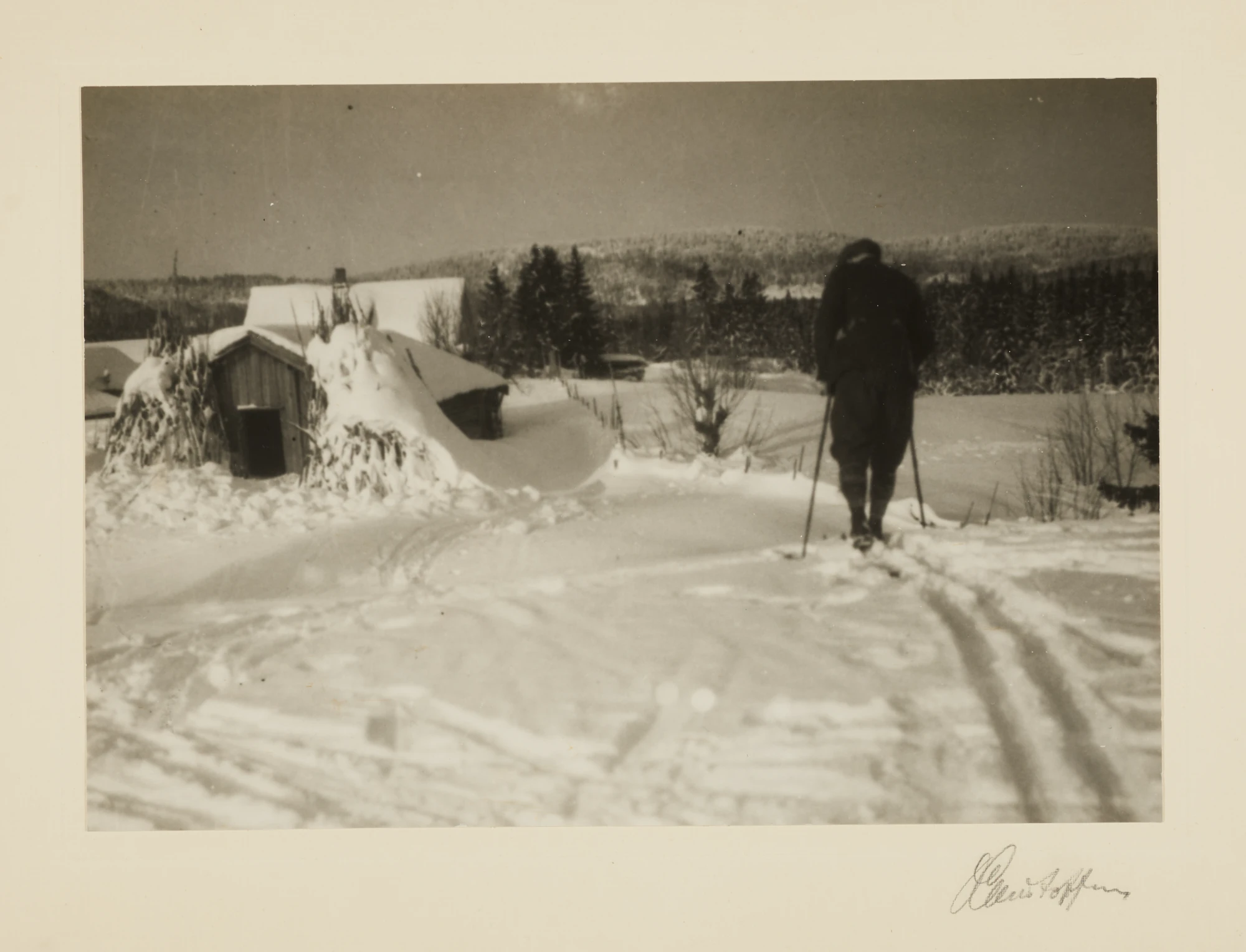 Technical Details: Olaf Christoffersen used soft focusing and careful lighting to capture the clear winter day and the texture of the snow. The contrast between the dark skier and the bright snow adds depth and dimension to the image. This technique showcases Christoffersen's ability to combine technical precision with a sense of calm and introspection, characteristic of his pictorialist style.